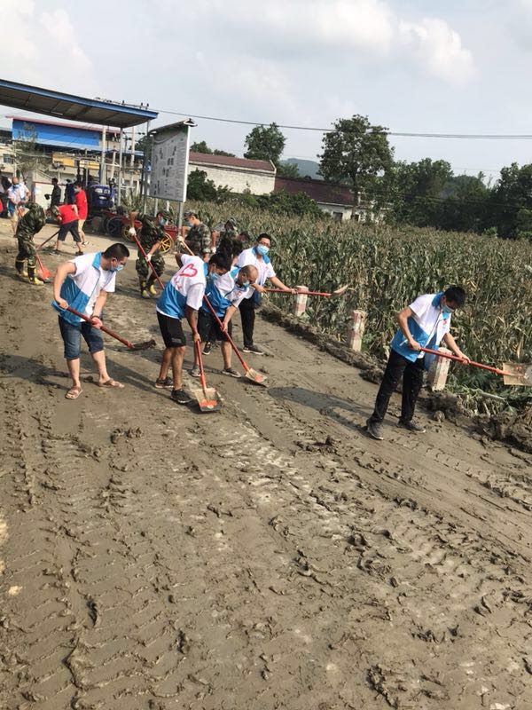 洪災(zāi)過后,我公司志愿者積極參與災(zāi)區(qū)清淤工作7月14日,我公司團委志愿者們與縣救災(zāi)民兵一起抵達金華鎮(zhèn)黑水浩村進行災(zāi)后清淤工作。洪水過后所浸之處留下了厚厚的淤泥和大量垃圾,志愿者們頂著烈日,不怕苦、不怕累,自帶鐵楸等物資,沿著布滿淤泥的街道開